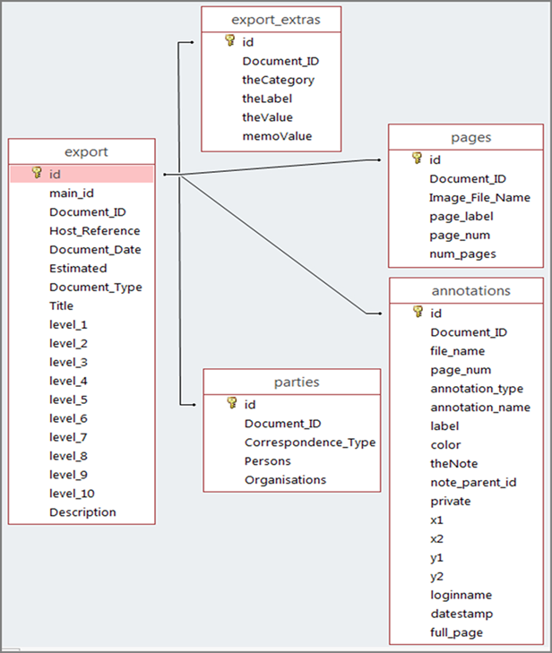As shown in the following figure, the tables are linked by the Document_ID, which must be included in each document row of a table.